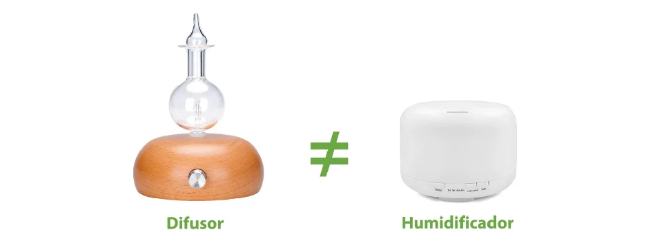 El humidificador, mal llamado “difusor” a veces, ioniza el aceite esencial en agua pero no permite optimizar el aprovechamiento del aceite esencial en el ambiente. Solo difumina parcialmente la fragancia del aceite esencial en un espacio reducido. Sube el vapor agua + aceite esencial y cae al piso. Consume mucho aceite esencial para un efecto muy corto a la diferencia del difusor a efecto Venturi que usa el aceite esencial de manera “circular”, es decir que con este difusor una parte del aceite esencial se nebuliza con el aire de la bomba y la otra vuelve a la base del balón para volver a ser nebulizado.